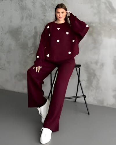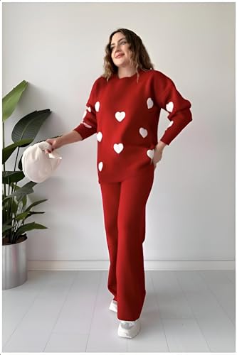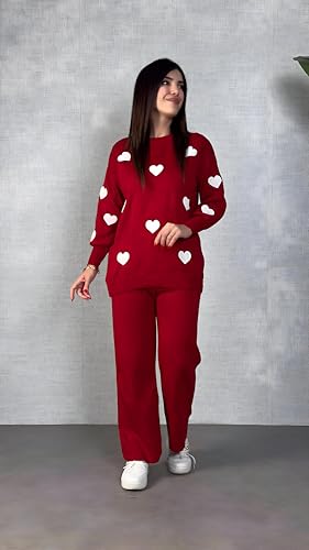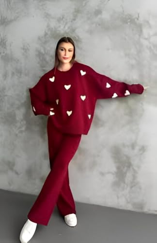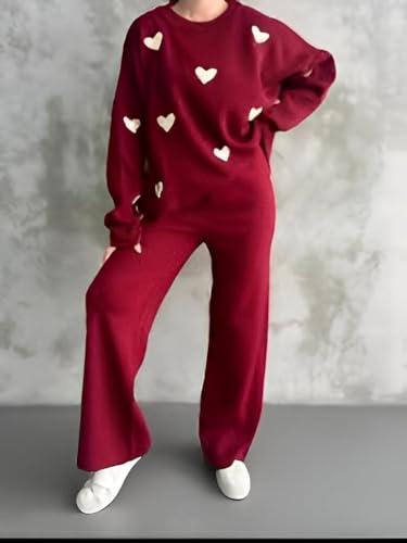 Generic - بلوفر كاجوال دافئ بأكمام طويلة مزين بنمط قلوب بيضاء أنيقة بقصة لطيفة ومريحة، أسود