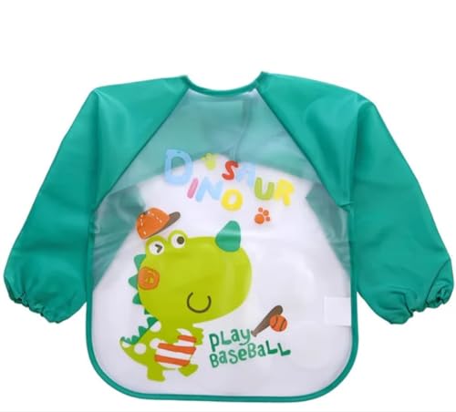 Generic - مريلة أطفال طويلة الأكمام مقاومة للماء – بافته قابلة للغسل لحماية الملابس أثناء الأكل والرسم والرضاعة، مناسبة للرضع والأطفال من 1-6 سنة