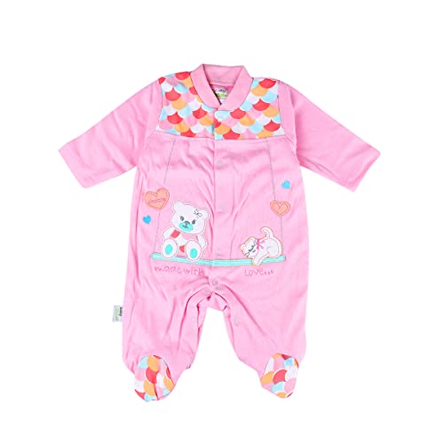 Generic - سالوبيت بكباسين قطن باكمام طويلة مع طاقية للاطفال مقاس 0:3 شهور - بينك