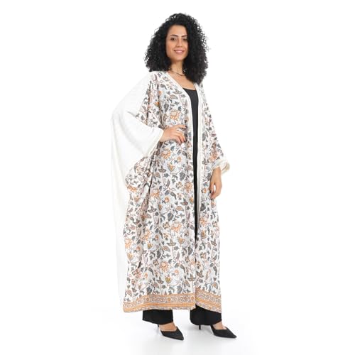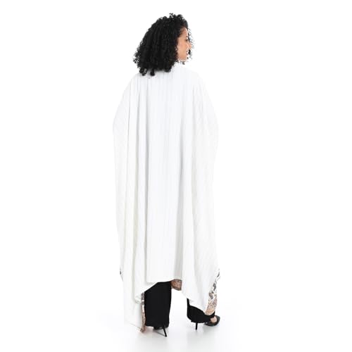 JAMILA - كارديجان من جميلة للنساء بقصة عادية، لون أوف وايت ورمادي، مقاس حر