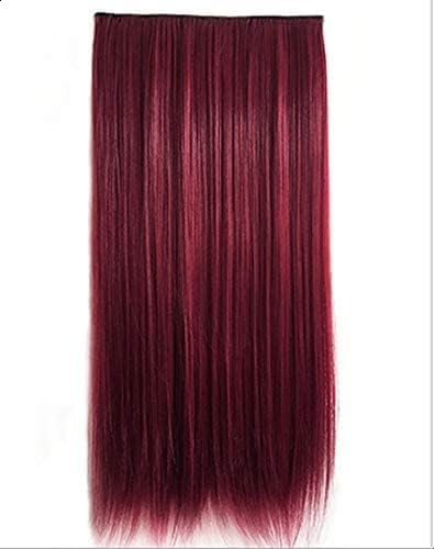 Generic - شعر مستعار اكستنشن طويل لون احمر مفرود قابل للغسيل والمكواه