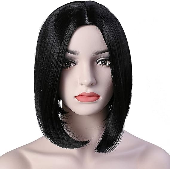 Generic - باروكة طويلة مفروده ومستقيمة ومقاومة للحرارة من الياف صناعيه مع فرق فى المنتصف استايل بوب