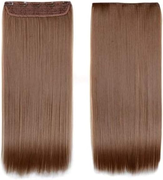 ECIF - وصلات شعر صناعية طويلة مفرودة بطول 70 سم ووزن 140 جم من اي سي اي اف (بني متوسط)