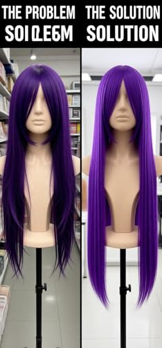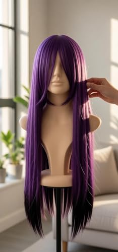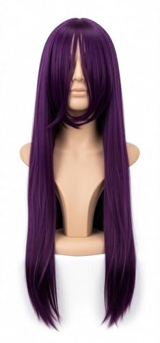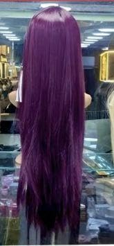 Generic - شعر مستعار صناعي طويل مفرود - لون اسود طبيعي، الياف مقاومة للحرارة، تصميم خفيف الوزن للارتداء اليومي، سهل التصفيف والصيانة، مثالي لجميع المناسبات (ارجواني داكن)