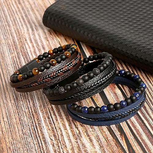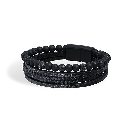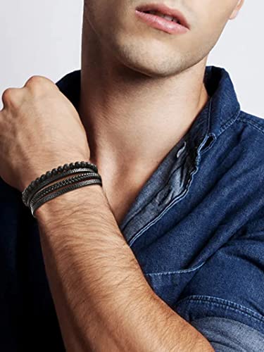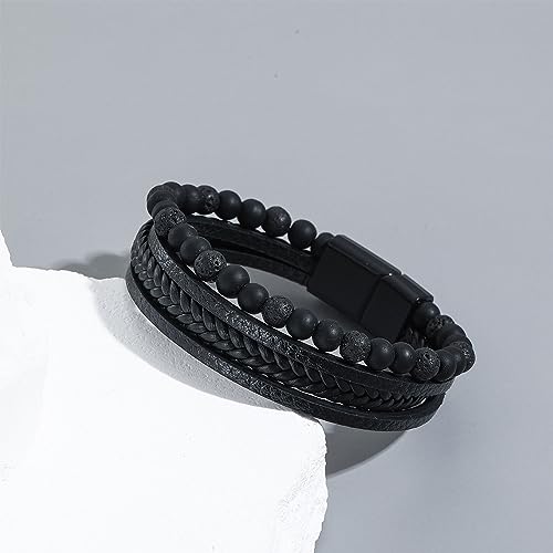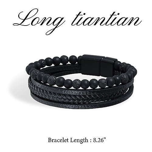 Long tiantian - لونج تيانتيان سوار جلد مزين بخرز من الستانلس ستيل، سوار جلد مضفر للجنسين متعدد الطبقات، سوار بوهو من الجلد المضفر (اسود)، خليط معدني