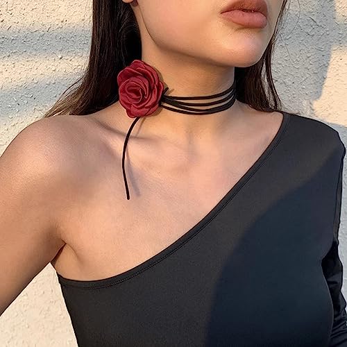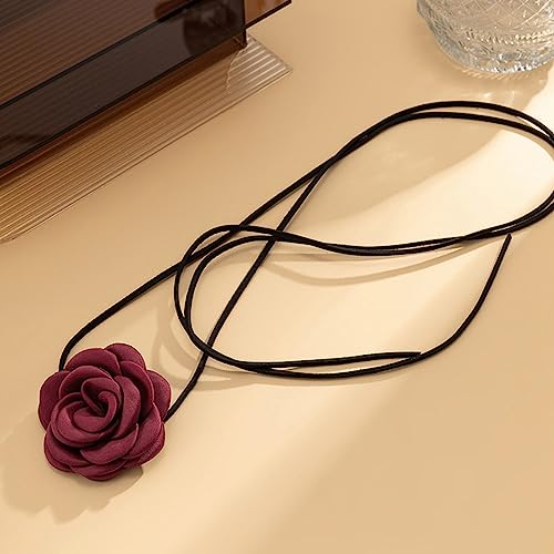 Long tiantian - قلادة شوكر على شكل زهرة مخملية بلون وردي واسود وابيض وقلادة كبيرة كاميليا للنساء والفتيات للعروس وحفلات الزفاف والصيف اخرى