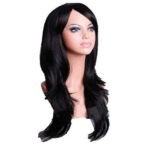 Generic - باروكة شعر طويل مموج، أسود، شعر مستعار نسائي بتصميم طبقات
