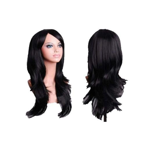 • شعر مستعار طويل: شعر مستعار نسائي أسود طويل بتصميم متموج وناعم يصل طوله إلى حوالي 60-70 سنتيمتر لمظهر طبيعي وجذاب