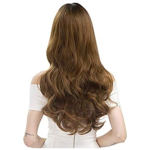 Generic - شعر مستعار طويل مموج بني، شعر صناعي كامل بمظهر طبيعي للنساء