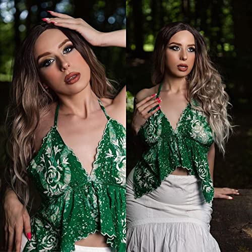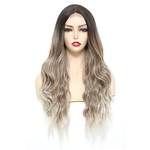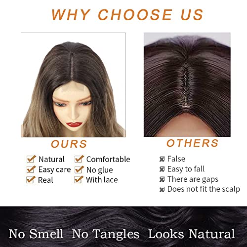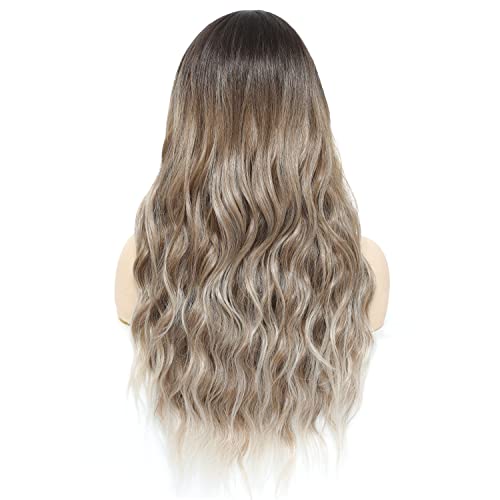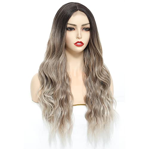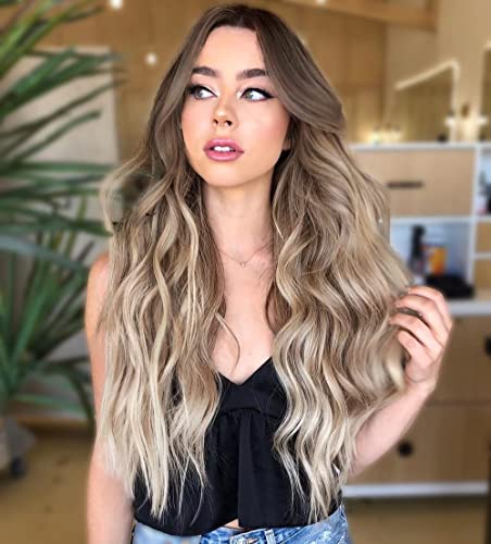 Generic - باروكة طويلة ومموجة اومبريه بني الى اشقر للنساء مع فرق في الوسط من شعر صناعي بمظهر طبيعي مقاوم للحرارة للاستخدام اليومي والحفلات، 26 بوصة