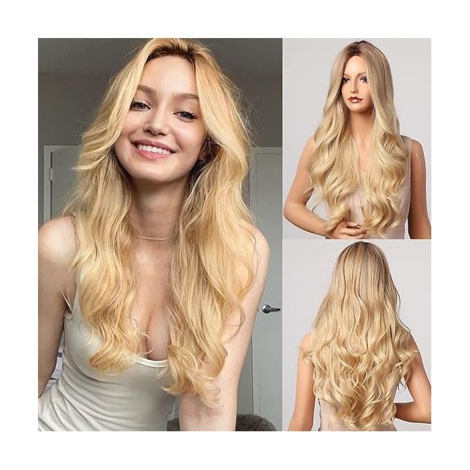 Generic - باروكة شعر مستعار طويل مموج، شقراء، شعر صناعي كامل، تسريحة طبيعية