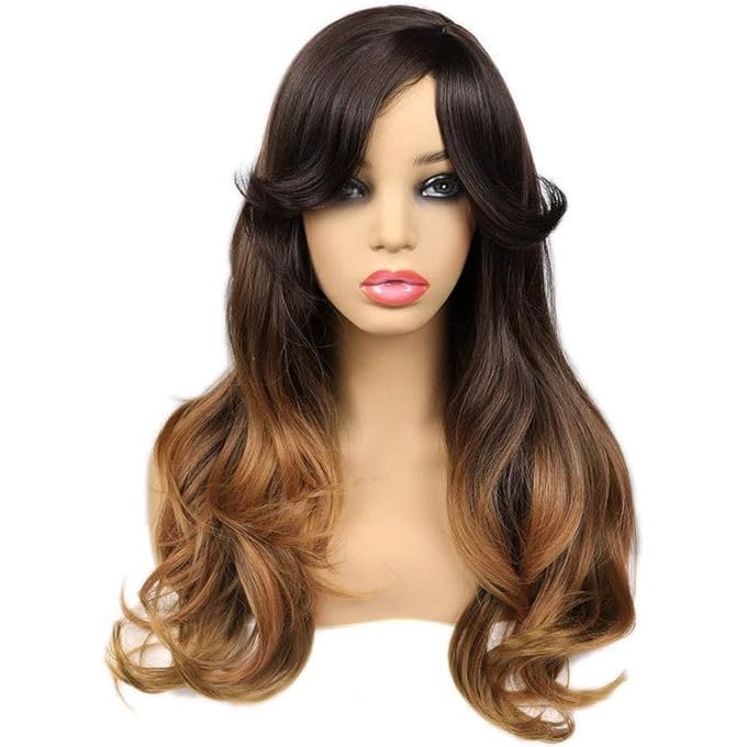Generic - باروكة شعر طويل مموج، أومبري بني وبلوندي، شعر مستعار نسائي بغرة جانبية