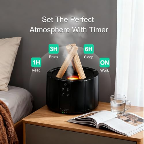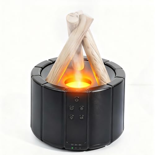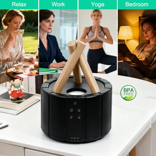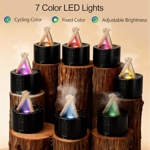 Longiang - موزع روائح لهب كامبفاير للزيوت العطرية من لونجيانج، 250 مل بالموجات فوق الصوتية مع جهاز تحكم عن بعد، ضوء LED 7 الوان، مؤقت وايقاف تلقائي للمنزل والمكتب (اسود)