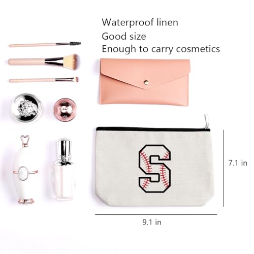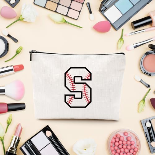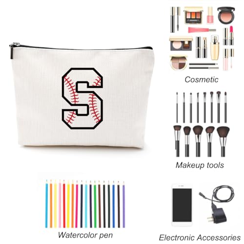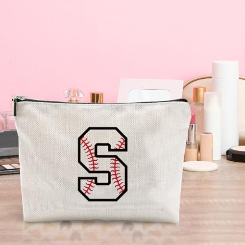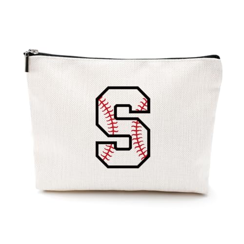 LONGXIN - شنطة مكياج مخصصة بالحرف الأول A-Z، شنط مستحضرات تجميل مطرزة بالحروف الأولى، شنطة أدوات نظافة للبيسبول مخصصة للنساء والبنات الصديقات والمدربات وفريق البيسبول من لونج شين (S)