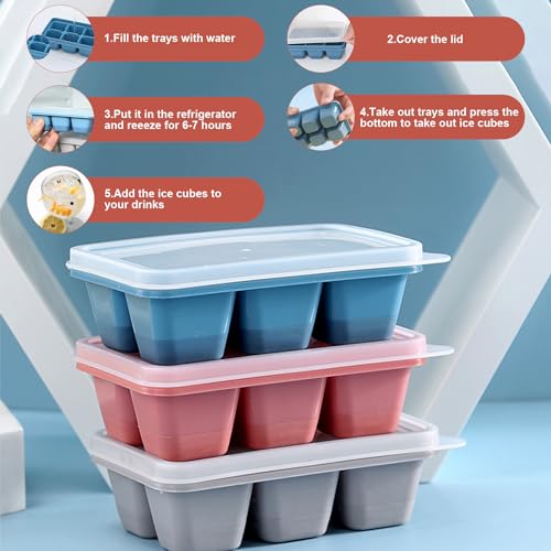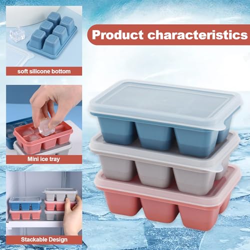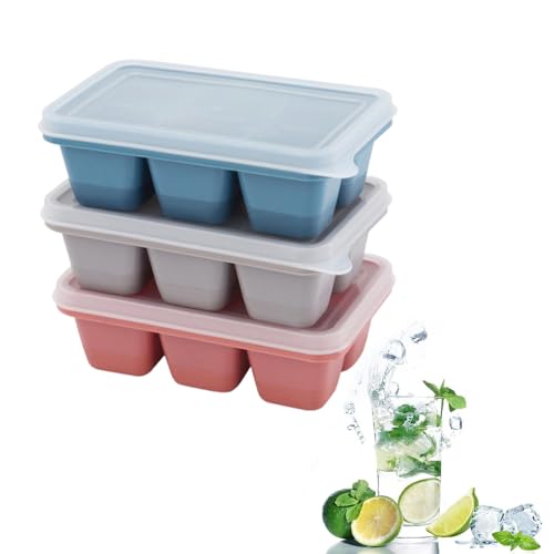 Lonimia - صواني مكعبات ثلج لونيميا، عبوة 3 قوالب مكعبات ثلج سيليكون مربعة صغيرة الحجم مع أغطية قابلة للإزالة ولإعادة الاستخدام سهلة الفك، قوالب مكعبات ثلج مرنة للمشروبات والكوكتيل، ألوان متعددة