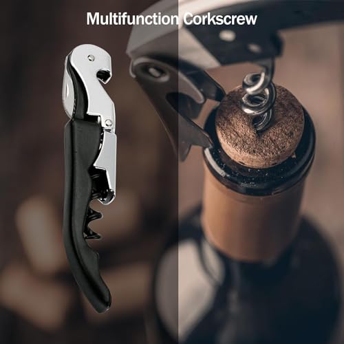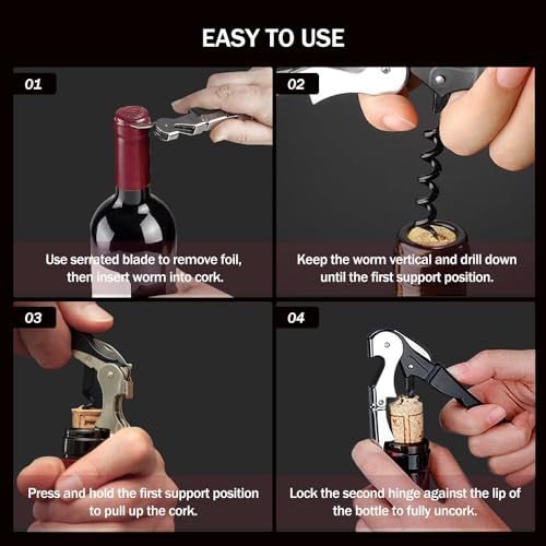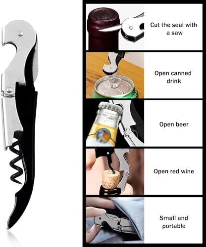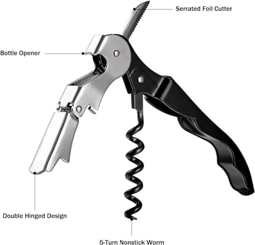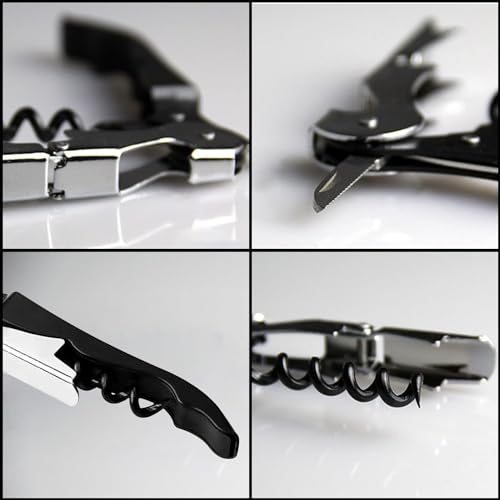 - مفصلات عالية القوة: تم تجهيز فتاحة النادل الخاص بنا بمفصل مزدوج لرفع أفضل وتتميز بمقبض منحني مريح وقاطع رقائق لزجاجات المشروبات وفتاحة زجاجات لأغطية الزجاجات.