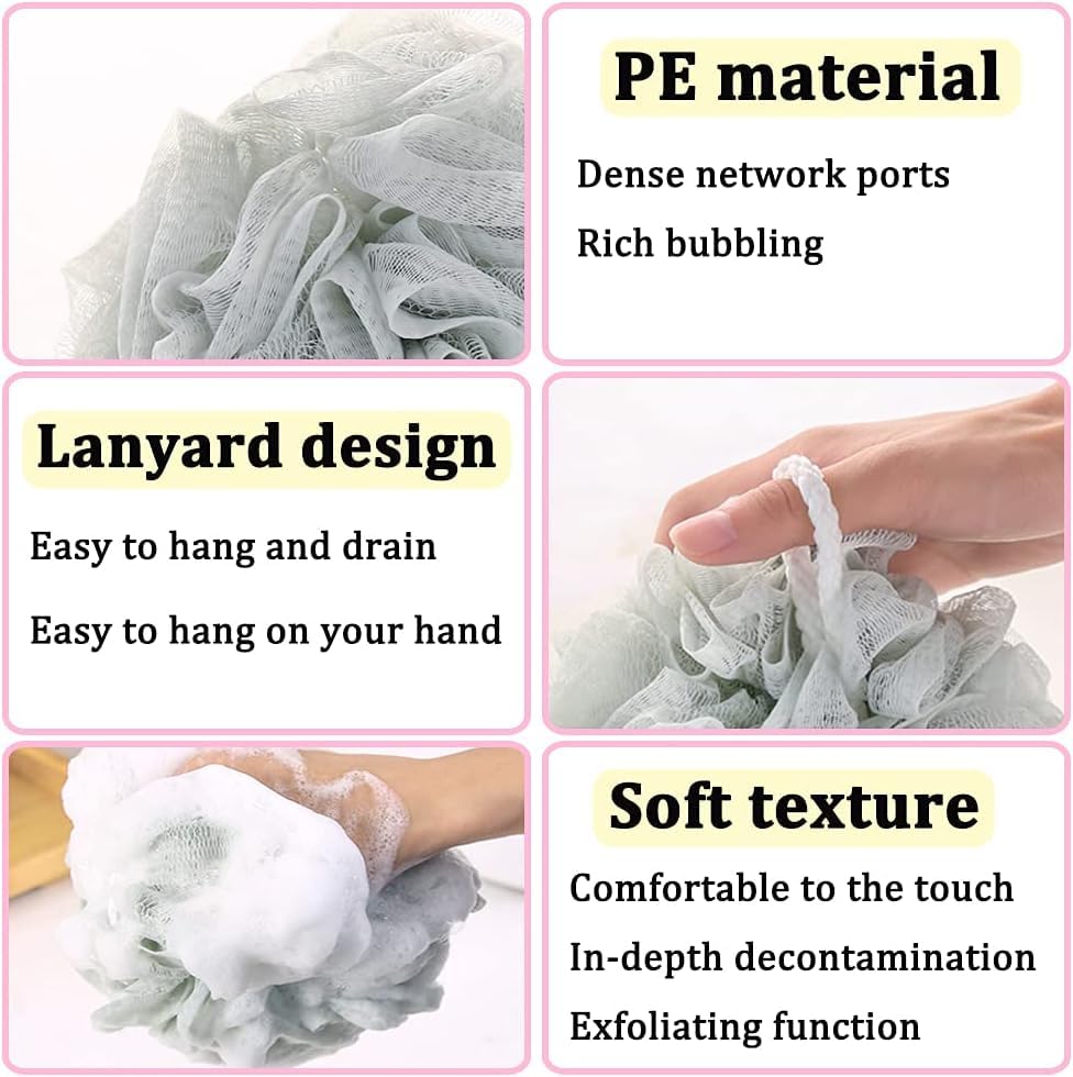 - 🌈 ناعمة ولطيفة على البشرة – صُنعت ليفة الاستحمام هذه من مادة شبكية ناعمة وعالية الجودة لتوفر رغوة غنية وتقشر البشرة بلطف دون التسبب في تهيج.
