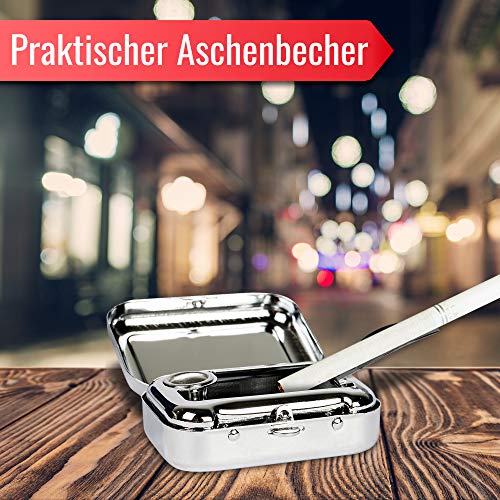 - منفضة سجائر مربعة الجيب - بقطر يصل إلى 10 أعقاب سجائر. وهذا يجعلها معجزة مطلقة لتوفير المساحة وكافية لفترة طويلة دون الحاجة إلى تفريغها