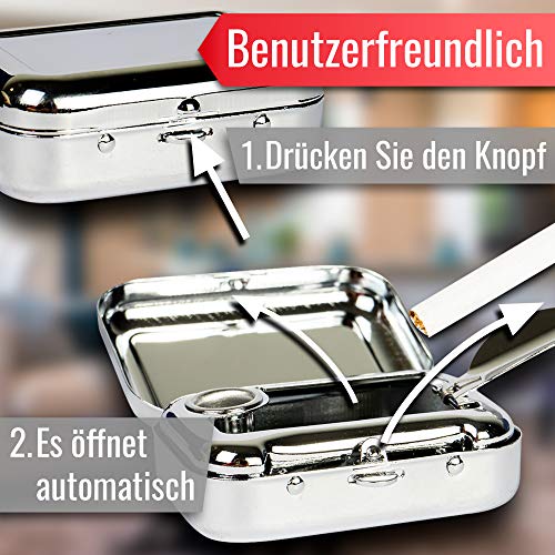 - سهلة الاستخدام - ما عليك سوى الضغط على الزر برفق وشحذ منفضة السجائر المربعة. عند إغلاق حامل السجائر، اضغط وأغلقه. لقد انتهيت!