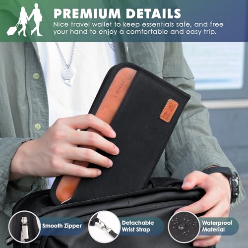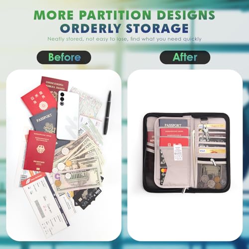- 【سهل الحمل】: يحتوي منظم السفر على حزام معصم. يمكنك تخزين جواز السفر وتذاكر الطيران والنقود وبطاقات الائتمان وبطاقة التطعيم وجوازات سفر الصعود والمفاتيح والأقلام