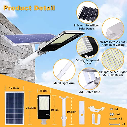 LOPMQRV - مصابيح شارع تجارية تعمل بالطاقة الشمسية ليد بقدرة 2000 وات تعمل من الغسق للفجر بسطوع فائق 155000 لومن مضادة للماء بمعيار IP65 بدرجة حرارة لونية 6500 كلفن من لوبمكويرف للستاد والفناء والكراج