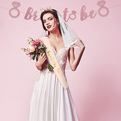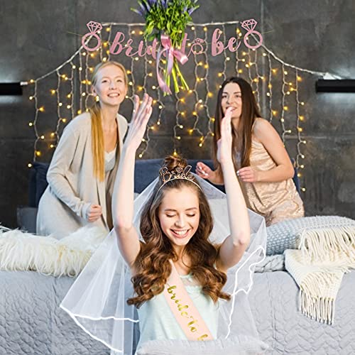 LOPOTIN - وشاح وطرحة بعبارة ولافتة "Bride to Be"، اكسسوارات حفلات توديع العزوبية لحفلة ما قبل الزفاف، ديكورات ليالي حفلات الزفاف وتوديع العزوبية من لوبوتين