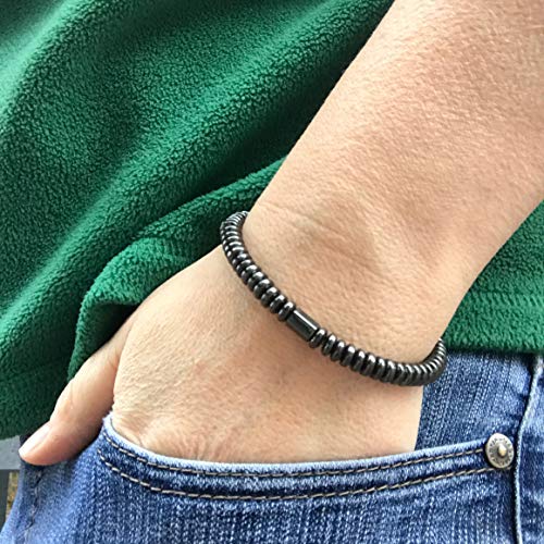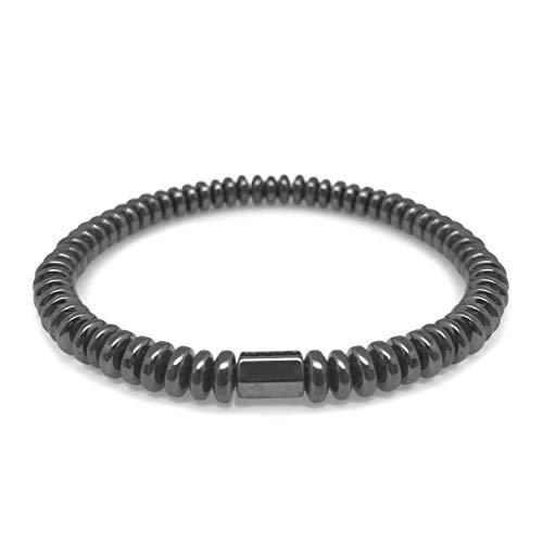 Loralyn Designs - لورلين ديزاينز سوار مطاطي من الهيماتايت للرجال والنساء قابل للتعديل 6 ملم، معدن، هيماتايت