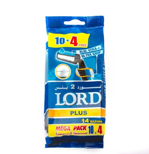 Lord - شفرات حلاقة مزدوجة للاستعمال مرة واحدة مع شريط تشحيم 10+4 شفرات حلاقة من لورد