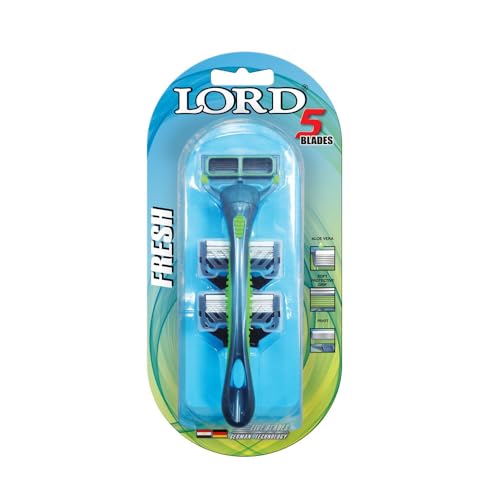 Lord - ماكينة حلاقة بخمس شفرات فريش من لورد مع قطعتين رؤوس غيار - ازرق