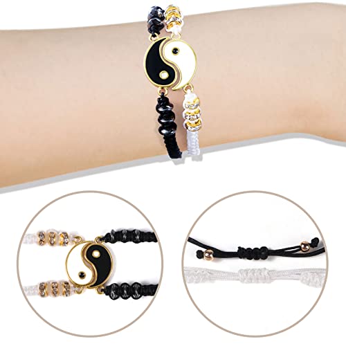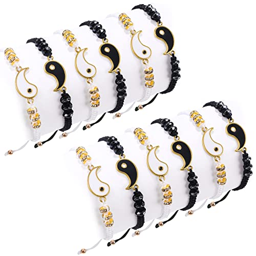 Lorfancy - سوار اعز الاصدقاء من لورفانسي للنساء والرجال، سوار متكامل ينج يانج للازواج والاصدقاء، سوار صداقة قابل للتعديل، هدية مثالية للافراد في علاقات وفي عيد الحب، 12 قطعة, فضي, Medium