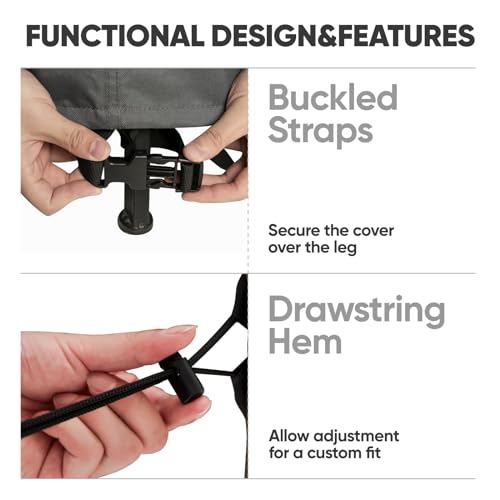- *مقاوم للرياح: يسمح لك حبل الحاشية المرن مع مفتاح التبديل القابل للتعديل بملاءمة مخصصة ضيقة في الجزء السفلي من أغطية الكراسي الخارجية. توفر الأشرطة المثبتة على الساقين أمانًا استثنائيًا في الأيام الأكثر رياحًا.