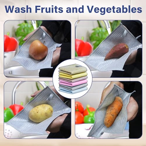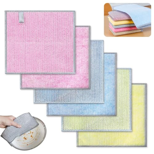LorSou - مجموعة من 6 قطع لورسو متعددة الاغراض لغسيل الاطباق اسلاك الستيل جديدة 2024 الوظائف ومضادة للخدش للاستخدام الرطب والجاف قابلة لاعادة الاستخدام سهلة الشطف مناسبة للمطبخ وادوات المائدة، قماش