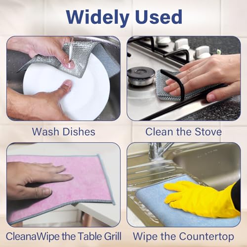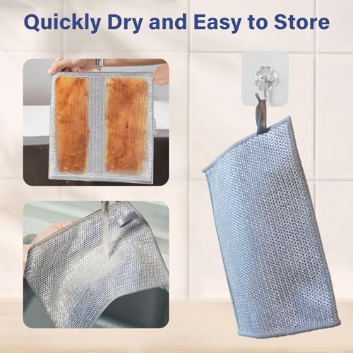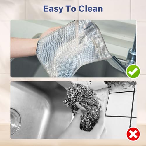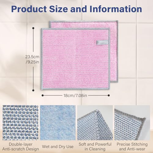 - 🍎【تصميم مزدوج الطبقات مضاد للخدش】: قماش غسيل الأطباق السلكي مصنوع من قماش عالي الجودة وسلك فضي. باستخدام قماش مزدوج الطبقات، يمكنه تنظيف البقع بعمق. التصميم المضاد للخدش لن يخدش الأشياء، يمكنك استخدامه بثقة.