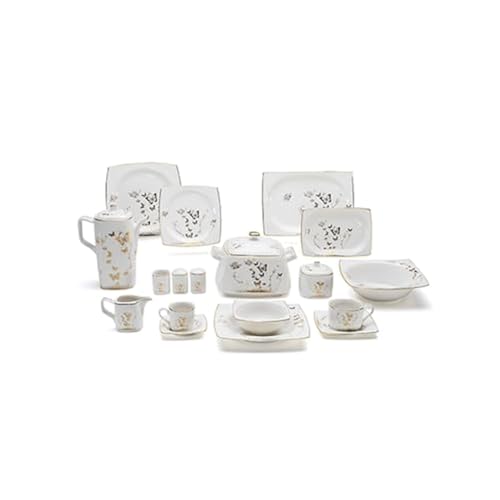 Lotus - طقم عشاء بورسلين تيشيب من لوتس، لون أبيض، 62 قطعة، موديل 1001997