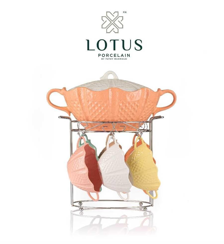 Generic - طقم مجات شوربة بورسلين بالاستاند لوتس دريم، 8 قطع - متعدد الالوان ارابيسك 2016، برتقالي