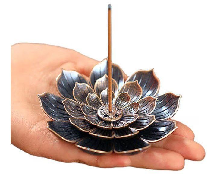 Generic - حامل بخور نحاسي بتصميم زهرة اللوتس - تصميم معدني ممتاز، يدعم البخور المخروطي، ديكور منزلي عطري امن وانيق (قطعتان)