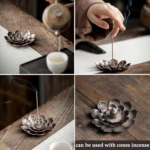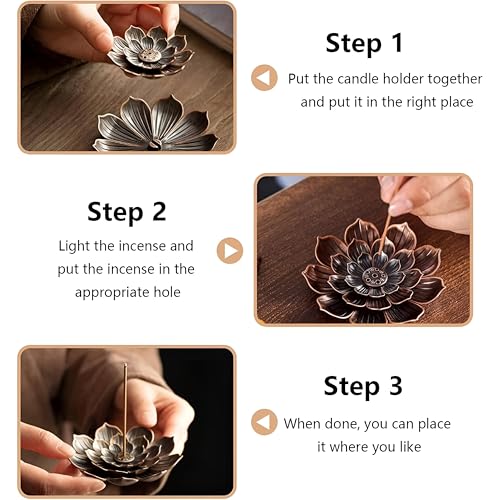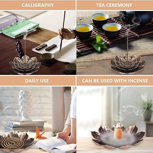 Generic - حامل البخور على شكل زهرة اللوتس - قم بتحويل مساحة المعيشة الخاصة بك إلى ملاذ هادئ مع حامل الشموع المذهل على شكل زهرة اللوتس المكون من قطعتين والذي يتضمن مصيدة رماد قابلة للفصل و6 فتحات للبخور للاسترخا