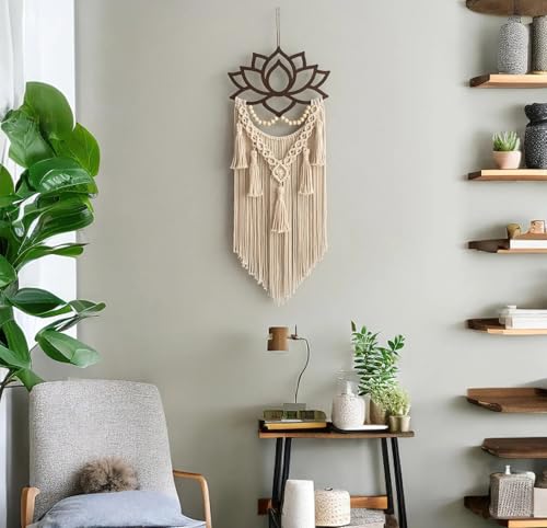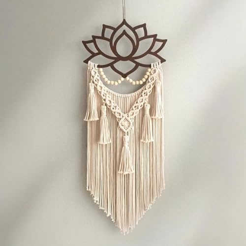 Generic - تعليقة مكرمية جدارية على شكل زهرة اللوتس، صائد الأحلام بتصميم زهرة اللوتس، ديكور جداري بنمط زهرة اللوتس، فن جداري بوهيمي، ديكور لغرفة اليوجا، مناسبة لمحبي البوهو (U20) (مقاس صغير)