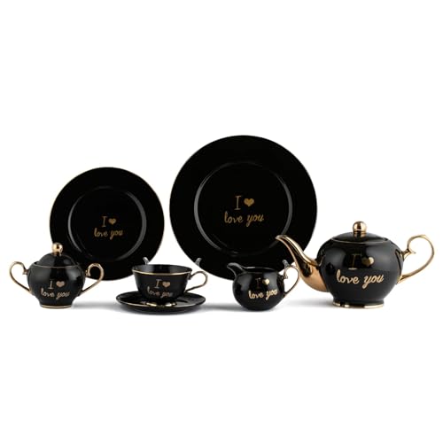 Lotus Porcelain - طقم شاي لوتس بورسلين 9009 فتحي محمود لوف يو 24 قطعة، رقم 3، اسود