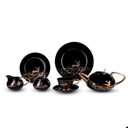 Lotus Porcelain - طقم شاي غزال بتصميم شجرة فتحي محمود من البورسلين 9013 24 قطعة رقم 12 أسود لوتس بورسلين