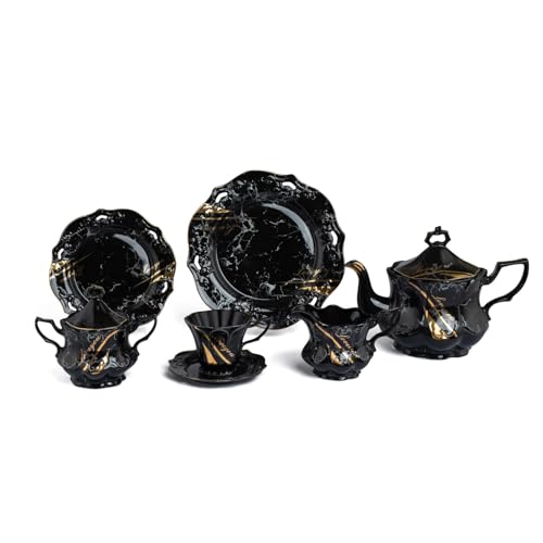 Lotus Porcelain - طقم شاي لوتس كارمن بورسلين 9018 من فتحي محمود مطبوع بشكل سداسي 24 قطعة رقم 3 متعدد الألوان