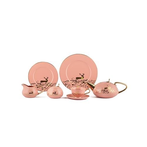 Lotus - طقم شاي من لوتوس، 6 أطباق فطيرة و6 أطباق جاتو و6 أطباق عميقة مع 6 أسياخ الشواء، مجموعة من 24 قطعة، وردي (سيمون تري)، 1002057
