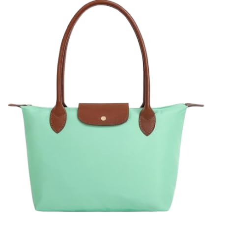 LOU - شنطة يد كبيرة توت انيقة من لوو، لون اخضر مينت مع مقابض من الجلد البني، مقاس M