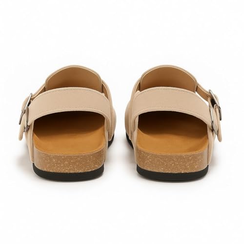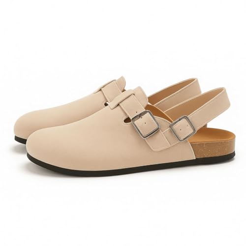 LOU - صندل كلوج للنساء من الجلد السويدي بحزام خلفي مع شريط إبزيم من لو، شبشب كلوج بيج فاتح، أحذية مريحة كاجوال