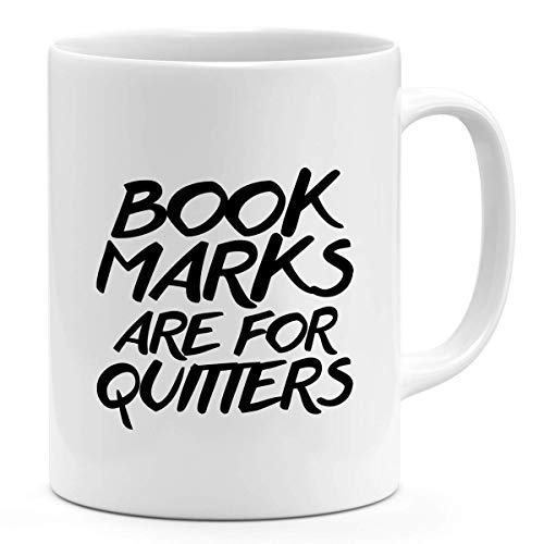 Loud Universe - لاود يونيفيرس مج من السيراميك بتصميم علامات كتاب مطبوع عليها عبارة «Are For Quitters»، أبيض