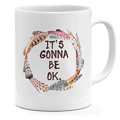 Loud Universe - لاود يونيفيرس كوب سيراميك عليه عبارة «Its Gonna Be Ok» من الريش، ابيض