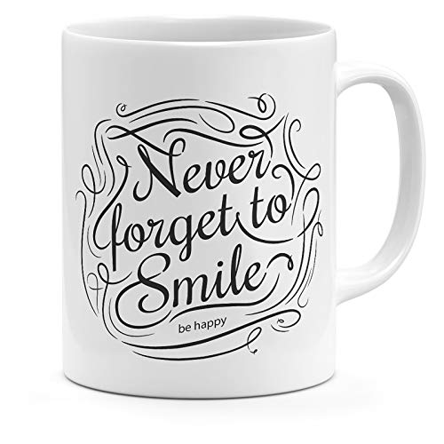 Loud Universe - كوب سيراميك مطبوع عليه عبارة «Never Forget To Smile» - ابيض