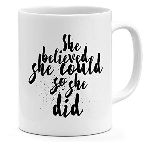 Loud Universe - لاود يونيفيرس مج سيراميك بعبارة She Believed She Could So She Did Motivation، ابيض