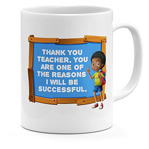 Generic - مج قهوة سيراميك مطبوع بعبارة «Thank You Teacher I Will Be Successful» من لاود يونيفيرس، ابيض