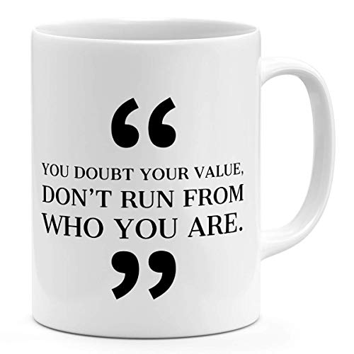 Loud Universe - لاود يونيفيرس مج مطبوع عليه عبارة You Doubt Your Value Dont From Who You Are Inspirational، سيراميك، أبيض